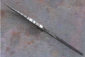 Description: Swedish bladesmith Michael Andersson forges a great blade. The complex mosaic Damascus pattern depicts diamonds set in a radial. The edge bar is a fine explosion pattern. By combining 20C and 15N20 carbon steels, Micke assures especially high contrast while having excellent edge retention. The hunter/utility-style blade has been forged to shape. It has been fully heat treated and is ready to be finished out either by your favorite maker or to make a knife yourself!