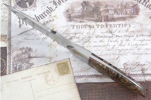 Description: Mastersmith Kirk Rexroat is well known for precision, attention to detail, and a restrained sense of elegance. The Nomad is an exceptional hunter. Kirk began by forging the blade and full tang from 52100 carbon steel. Many knifemakers and knife users feel that this steel is among the best, if not the best steel for knives. The edge is both long lasting and high performance. A distal taper to the blade and tang result in a perfect balance. Stainless bolsters are dovetailed to black ash burl scales. The black ash burl has a dramatic, swirling grain structure. Black fiber spacers allow the handle to adjust to temperature and humidity changes. Extremely comfortable in the hand with a perfect fit and finish throughout.