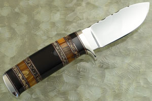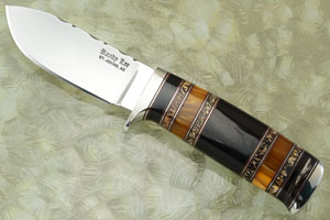 Description: As an avid hunter, Randy knows how a good hunting knife should perform. He loves to "field-test" his designs and feels that a quality knife should not only look great, but perform well as a tool. The knife should be extremely comfortable to hold and perform at a level that is extremely hard to find elsewhere. This knife is no exception.
