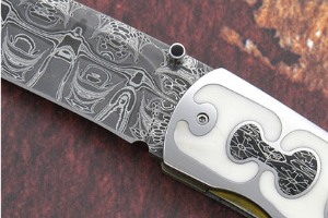 M3 Folder with Mosaic Damascus and Warthog Tusk