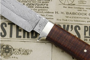 Description: Erik Fritz's knives have a classic look and feel coupled with an outstanding eye for uniquely detailed materials. This Damascus blackwood hunter is a perfect example.