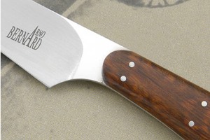 Description: This upswept bird and trout knife has a dramatic South African feel and look. The snakewood is warm toned and has darker striations. It is pinned with five stainless steel pins. The blade has been satin finished in the hollow grind and mirror polished on the flats, accentuating the dramatic grind lines. Both the blade and tang are distal tapered for optimal balance. This piece is small enough so as not even to notice that it is with you, yet large enough to do hard work. A great piece for a collection or to use in the field.