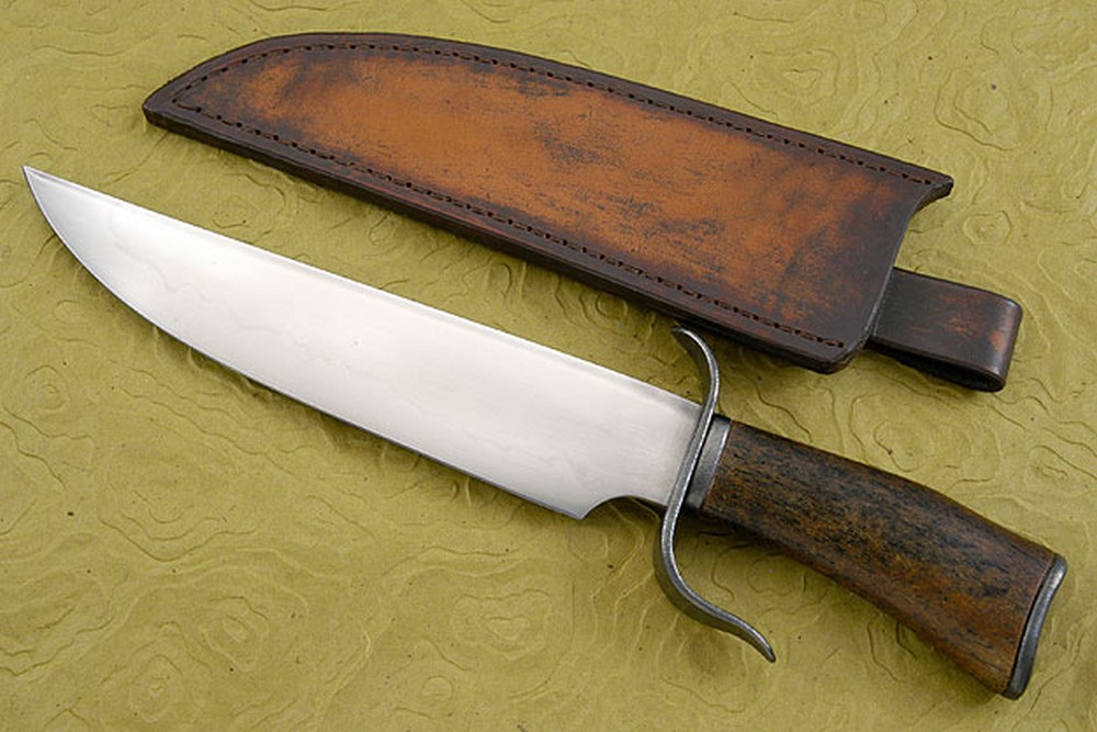 Excellent fit and finish throughout. This large camp knife is accompanied by a hand sewn cowhide sheath.