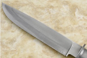 Description: Swedish bladesmith Michael Andersson is a force to be reckoned with. Unlike many Nordic knifemakers, Michael believes very strongly in sole authorship, from forging the blade to shape, to creating the Damascus, to sewing the sheath. His style is immediately identifiable and is very dramatic. Micke is one of the few Swedish makers to make such large, impressive Bowies.