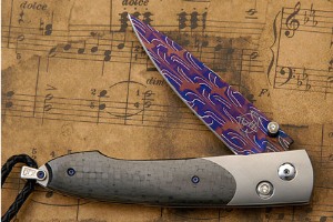 Blade: Heat-blued carbon damascus by Larry Donnelly