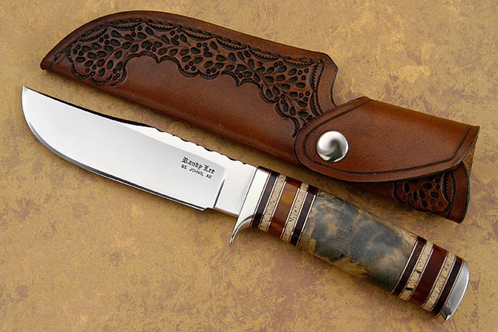 Description: As an avid hunter, Randy knows how a good hunting knife should perform. He loves to "field-test" his designs and feels that a quality knife should not only look great, but perform well as a tool. This one-of-a-kind drop point hunter is no exception.