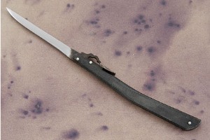Description: A Higonokami is a type of folding pocketknife native to Japan. This traditional knife is a friction folder, using the friction of the swivel and the pressure of the user's hand on a protruding tang to prevent the knife from folding during use.