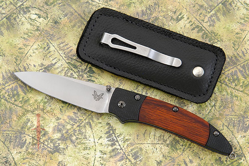 Description: Designed by Seiichi Nakamura, the 480 Shoki is the embodiment of a gentleman's carry. No details were overlooked in the production of this elegant tool, including the brand new Nak-Lok, beautifully contoured G10 and stabilized wine wood handle scales, radiant blue anodized titanium liners, and rich black nickel hardware. The stainless steel backspacer utilizes cutting edge MIM technology to emulate custom hand file work, the hollow-ground S30V crowned blade, and handy sheath complete this package. The excellence of this knife was recognized by the IWA, and was celebrated as the IWA 2008 Knife of the Year.