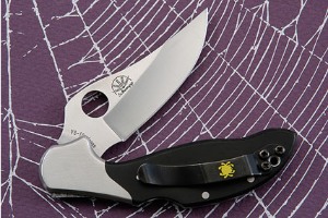 Description: The Spyderco Persian 75mm Knife, designed by Ed Schempp, features a 3" blade made of VG10 stainless steel. The blade has a bug logo and a Spyderco hole for ambidextrous one hand opening. The black Micarta handle, 3 15/16" closed, has steel bolsters, Boye dent lockback and a lined lanyard hole. A removable black metal pocket clip with gold bug logo is mounted at the butt end.