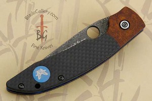 Handle: Carbon fiber scales set on blue anodized titanium liners
