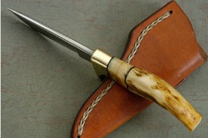 The sheep horn handle fits comfortably into the hand. When wet, sheep horn does not become slippery, and it is amazingly durable. The spacer is created by taking two sheep horn end cuts and aligning them outward, producing a very pleasing effect. Excellent fit and finish throughout.