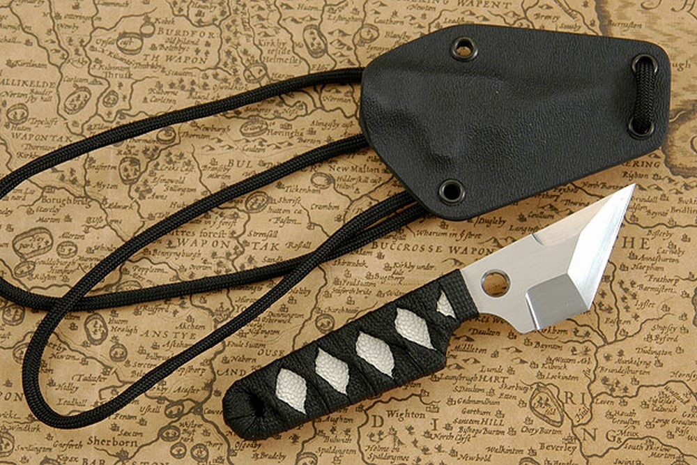 Rayskin is one of the toughest and most elegant materials available for tactical knife handles. The winter white rayskin provides a stunning contrast set beneath black nylon wrap. Combined, these two materials ensure a secure, comfortable grip. Excellent work throughout!