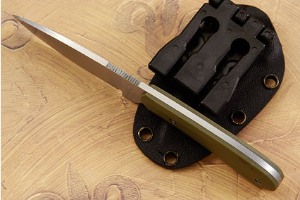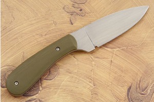 The 52100 carbon steel blade was triple quenched and triple tempered for grain refinement and optimal edge holding. Many makers and collectors feel that 52100 is among the best steels available for knifemaking. When combined with a triple temper and triple quench, as shown in the works of Mastersmith Bill Burke, the results are exceptional. A meticulous satin finish is a nice touch. The olive drab G10 handle has been nicely rounded for a sure, comfortable grip. The sturdy Kydex belt sheath is sure to keep this knife at the ready - if not on display. Another excellent knife from Fritz with his signature classic look and feel!