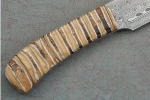 Description: This elegant mammoth molar hunter shows off South African maker Arno Bernard's work at its best. It is very rare to find damascus knives by Arno and the results are exceptional.