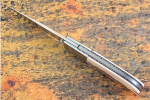 Description: South African knifemaker André Thorburn creates an exceptional folder at an amazingly low price. The blade is perfectly centered and silky smooth -- easily opened with one hand. The clip point Panzer 36 stainless blade is meticulously hand satin finished in the grinds and mirror polished on the flats. Panzer 36 is a martensitic stainless steel with high hardness, high wear resistance and good corrosion resistance. It is cross rolled in production to cancel out residual stresses from the manufacturing process. It has only recently begun being used by knifemakers and has gained significant acclaim by South African makers, where it has quickly found popularity. Mastersmith Kevin Harvey has been involved in the initial testing of Panzer 36 and describes it as having ' excellent edge holding and toughness.' The blade has been hollow ground for an easy to maintain edge.