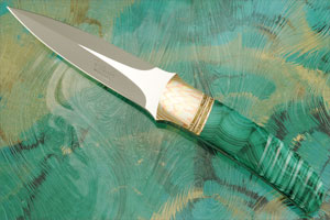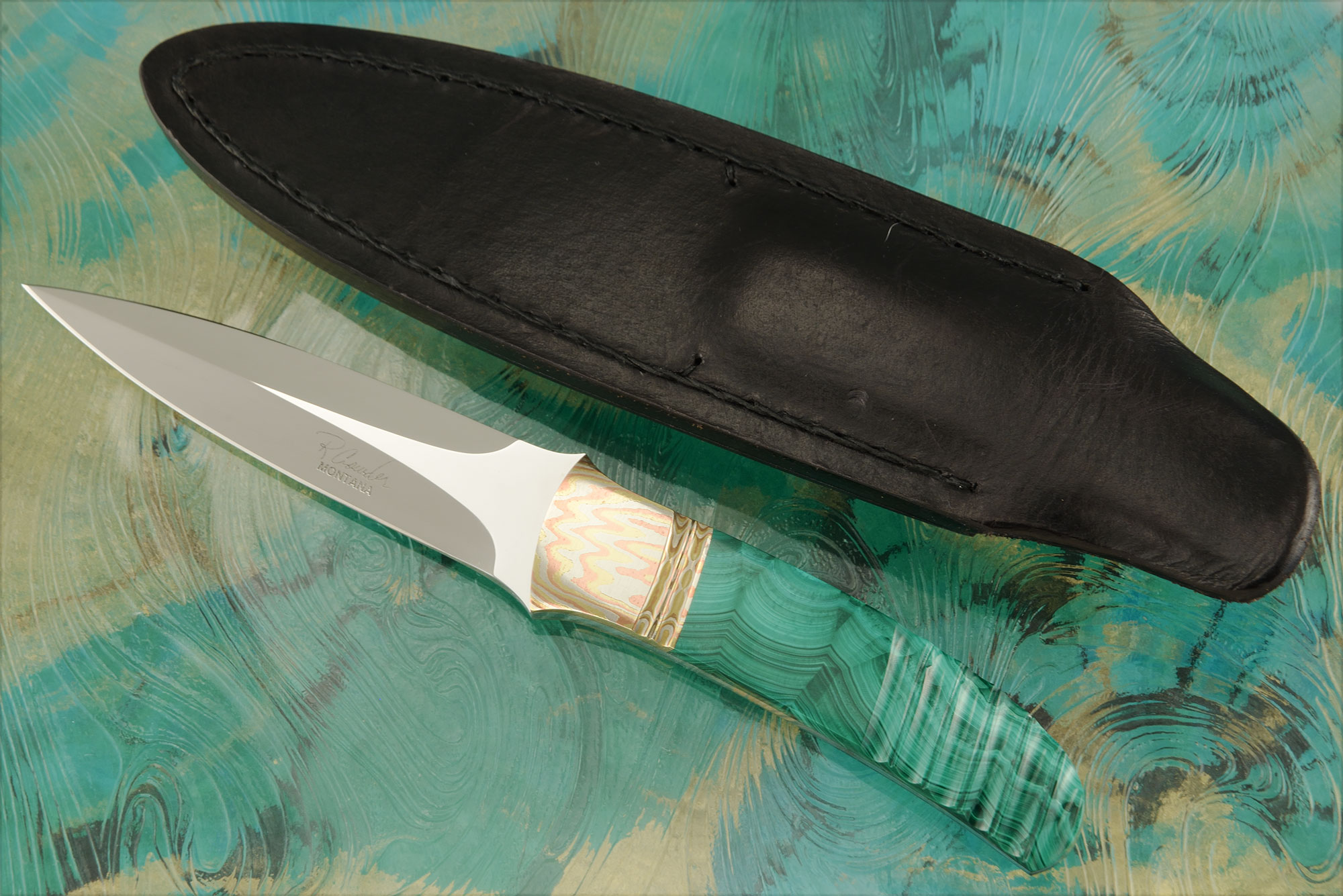 Product Description for Leaning Boot Knife with Malachite and Mokume