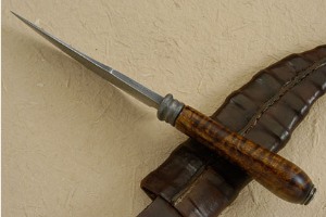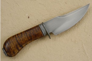 Description: This hunter by Raymond Richard has an ageless sense of grace that is rarely found in knives by other makers. The elegant blade shape is nicely complemented by the bulbous curly maple handle -- which feels so good that you won't want to put it down.
