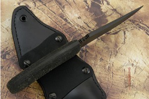 This knife is very similar to the standard issue model Daniel Winkler is currently providing to active duty operators within the Naval Special Warfare Unit. The blade is formed from 3/16" 52100 carbon steel with a non-glare Caswell finish. A full tapered tang means great balance. A slip-resistant recycled rubber handle is set on the full tang.