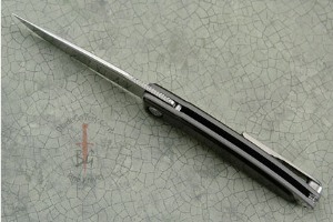 This Mnandi features jet black Gabon Ebony (Diospyros crassiflora -- native to western Africa) scales. The scales are inlaid into the frame rather than being simple overlays. The jet black tones of the ebony are a great contrast to the titanium and steel knife. The blade is made from S35VN stainless steel for strength and keen edge retention. Both the liners and pocket clip are formed from 6Al4V titanium, keeping this knife extremely light and durable. The clip is mounted for tip up carry. The knife can be comfortably opened and closed with one hand and locks open for safety. The thumb rest is fileworked for dependable handling. The Mnandi features a strong integral locking mechanism that Chris Reeve popularized.