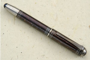 Description: Blacksmith, Frederick Weisenborn brings his years of experience to creating this dramatic and unique damascus fountain pen. The pen, which weighs just over 2 3/4 oz., has a solid, comfortable feel, making it a pen you'll be sure to reach for often. The fine damascus pattern holds attention.