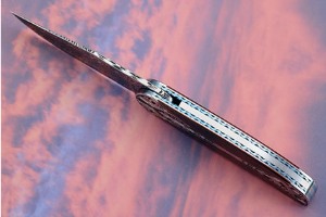 Product Description for L40 IKBS Damascus Interframe Folder with Carbon Fiber - Floral Scroll