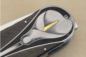 Handle: Engraved stainless steel with carbon fiber and 24kt gold inlay