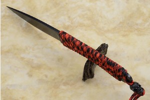 The blade is integral to the skeletonized handle. A paracord wrap provides a sure, comfortable grip. The handle is completed with an Emerson skull bead.