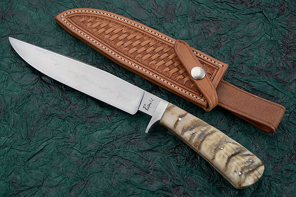 Accompanied by a custom fit hand tooled leather sheath. Excellent fit and finish throughout!