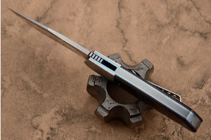 The clip point N690 stainless blade is meticulously hand satin finished in the grinds and mirror polished on the flats. N690 is a super-steel created by Bohler in Austria. It takes an incredibly sharp edge and holds on to it. The increased toughness gives it better resistance to edge chipping, and the blade has been hollow ground for an easy to maintain edge.