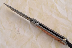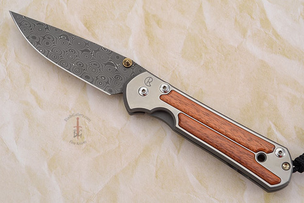 Description: Chris Reeve Knives are some of the finest semi-production knives made. This Sebenza 21 features premium bloodwood inlays set into the titanium frame. This Sebenza also has a stainless damascus steel blade with a raindrop pattern.