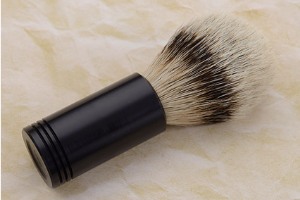 John Leitch created this handmade shaving brush by turning the handle from aluminum and creating a black mil-spec anodized finish. The brush measures 4-1/2 inches from base to tip, making it a perfect size for every day use.