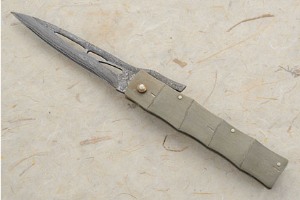 The elegant blade is stainless damascus surrounding a VG-10 stainless steel core. This steel ensures exceptional edge holding. Cutouts in the blade artistically enhance the lines of the blade. When closed, the exposed portions of the top of the blade are textured, which is attractive visually as well as helps provide an easier grip when opening. The blade has smooth action and is well centered.