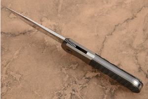 The blade is easily opened with a simple flick of the wrist or using the flipper mechanism. It is perfectly centered and has silky smooth action -- caused in part by the IKBS (Ikoma Korth Bearing System) pivot system. This mechanism, which was originally designed to fit balisong knives, uses ball bearings to create impeccably smooth action with no blade play. While open, the flipper doubles as a finger guard and jimping on the thumb ramp ensures a steadfast purchase.