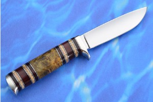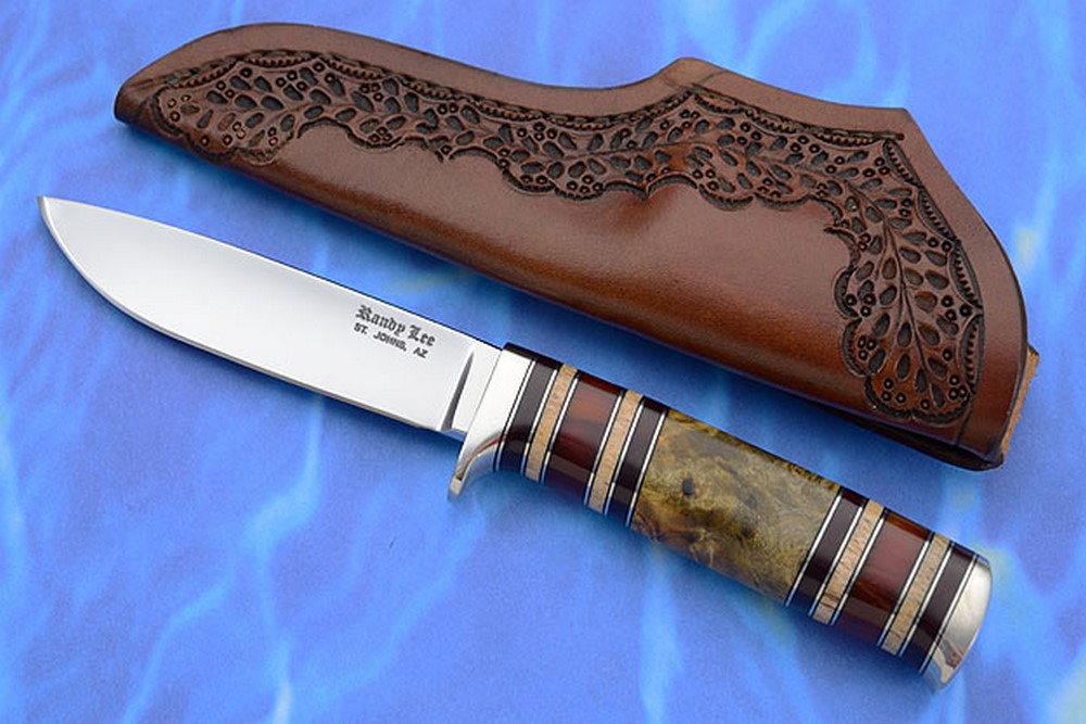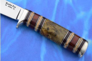 Description: As an avid hunter, Randy knows how a good hunting knife should perform. He loves to "field-test" his designs and feels that a quality knife should not only look great, but perform well as a tool. This one-of-a-kind clip point hunter is no exception.