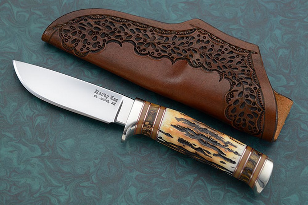 Description: As an avid hunter, Randy knows how a good hunting knife should perform. He loves to "field-test" his designs and feels that a quality knife should not only look great, but perform well as a tool. This one-of-a-kind drop point hunter is no exception.