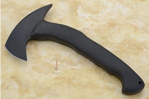 This is a sub-compact version of the full size RnD Hawk. The Winkler/Sayoc RnD Hawk is a field-proven collaboration between edged weapons expert Rafael Kayanan and Daniel Winkler. It is made with edge awareness, economy of motion and mobility in mind. The overall length is 9 inches while the head measures approximately 4-1/2 inches in length, with a cutting edge of just under 2 inches. This compact hawk is perfect for working in the closest quarters. Its light weight makes it a good choice to use when camping or out in the wilds. Designed so that the heaviest area rests at the head, the hawk's full tang is skeletonized and tapered reducing overall weight.