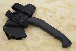 The versatile felt lined sheath is formed from Kydex with a rubber belt hanger.