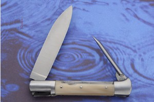 This beautiful Issoire folding knife is expertly crafted. This Issoire is a predecessor to the modern Lagioule knife. It features a shepherd's awl as well as a blade. Traditionally the shepherds awl was used for addressing sheep's colic in the field. However, the awl can just as easily be used to punch holes in leather or as a marlin's spike to loosen knots.