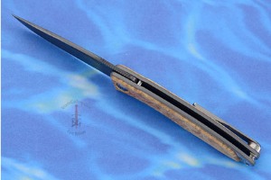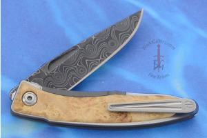 Handle: Box elder burl scales inlaid into a 6Al4V titanium frame