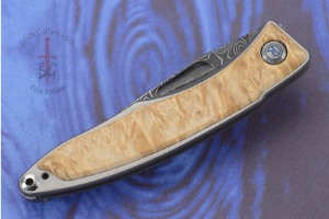 Handle: Box elder burl scales inlaid into a 6Al4V titanium frame