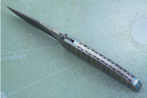 Handle: Stainless ladder pattern damascus with 24kt gold inlay by Julien Marchal