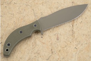Blade: CPM3V carbon steel with non-reflective, rust resistant tan Cerakote finish