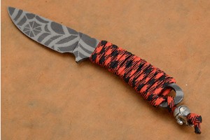 This neck knife is accompanied by a custom kydex sheath with matching Cerakote finish. Black Paracord keeps the knife at the ready.