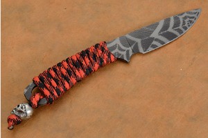 The blade is integral to the skeletonized handle. A paracord wrap provides a sure, comfortable grip. The handle is completed with an Emerson skull bead.