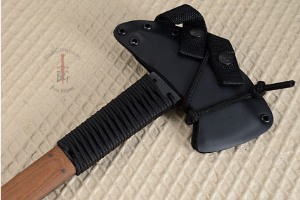 The resilient tan Micarta handle and cord wrap upper provide a secure grip in wet or dry conditions, as well as excellent shock-absorption. Includes a felt lined, Kydex carrier with nylon webbing belt hanger.