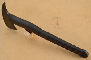 Weighing in at just under 1-1/2 lbs, this axe is designed for quick deployment and cleanup. Despite the large, double handed grip area, this hawk has proven to be lighter, quicker and easier to deploy. The full tapered tang is skeletonized, reducing while distributing weight in a way that improves balance and strike force. Overall length is 12-3/4 inches and the head measures 6" from cutting edge to spike. The cutting edge measures 2 inches.