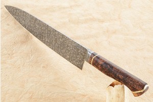 Product Description for Chef's Knife with Curly Koa, Box Elder Burl and Curly Mango (9-3/4 in.)