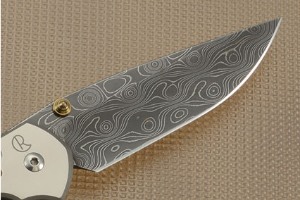 The blade is made from Devin Thomas "Raindrop" pattern stainless steel damascus for strength and keen edge retention.