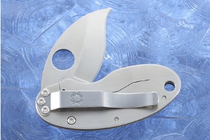 Description: Tom Sterling began with a high performance Spyderco Cricket, which was made in Seki, Japan. The stainless blade is formed from VG-10 super-steel. The swooped blade will have exceptional edge holding. The blade locks using a strong frame lock mechanism. The stainless steel handle begged for ornamentation.