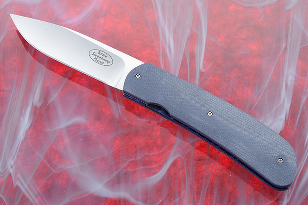 Description: This Kosie Steenkamp custom EDC liner lock is a front flipper design and a fantastic utility folder. The drop point blade and ergonomic handle are perfectly designed for the task at hand.